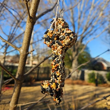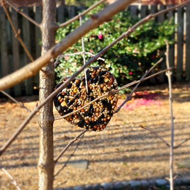 Hang Your Ornaments: Choose sturdy branches in your yard and hang the ornaments where birds can easily access them but are safe from predators.